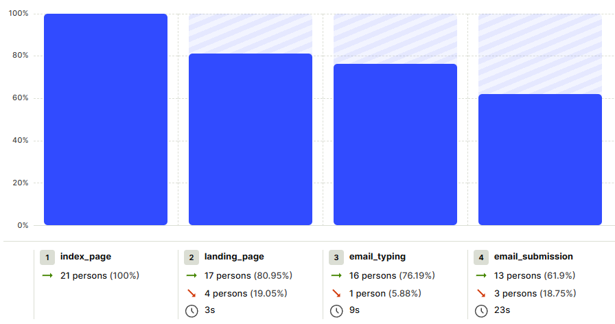 Below is the funnel representing how users move from their first interaction toward conversion. This funnel helps visualize both engagement depth and friction points.